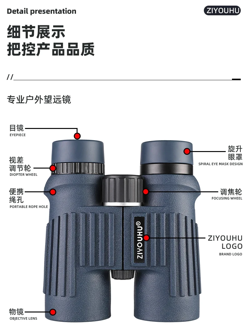 ZIYOUHU KY10X42 Binoculars HD Outdoor Bird Watching Hiking BAK4 Prism 42mm Objective Lens Large View For Camping